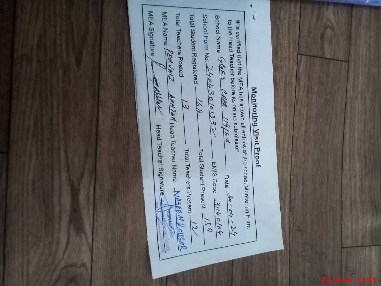 | EMIS Code: 31140104 | Name of School: GGES CHAK 119/6-R | |||