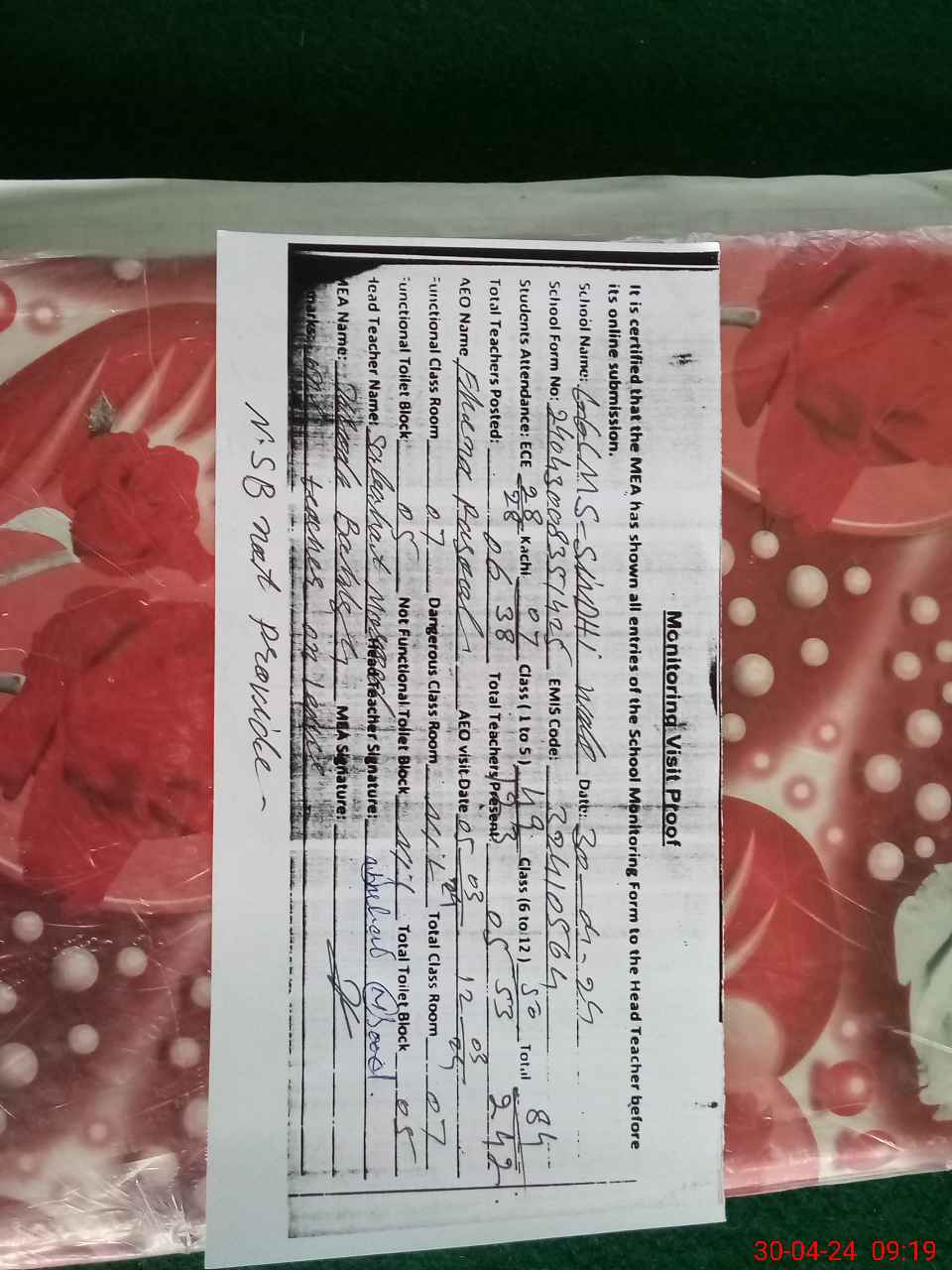 | EMIS Code: 32410564 | Name of School: GGCMS SINDHI WALA | |||