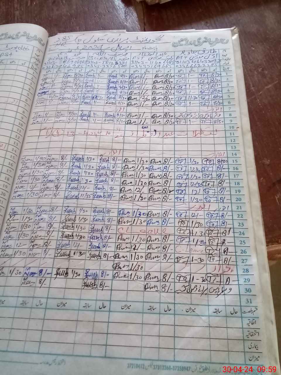 | CNIC | Full Name | Designation | R/C | Absence During Last Calender Month |