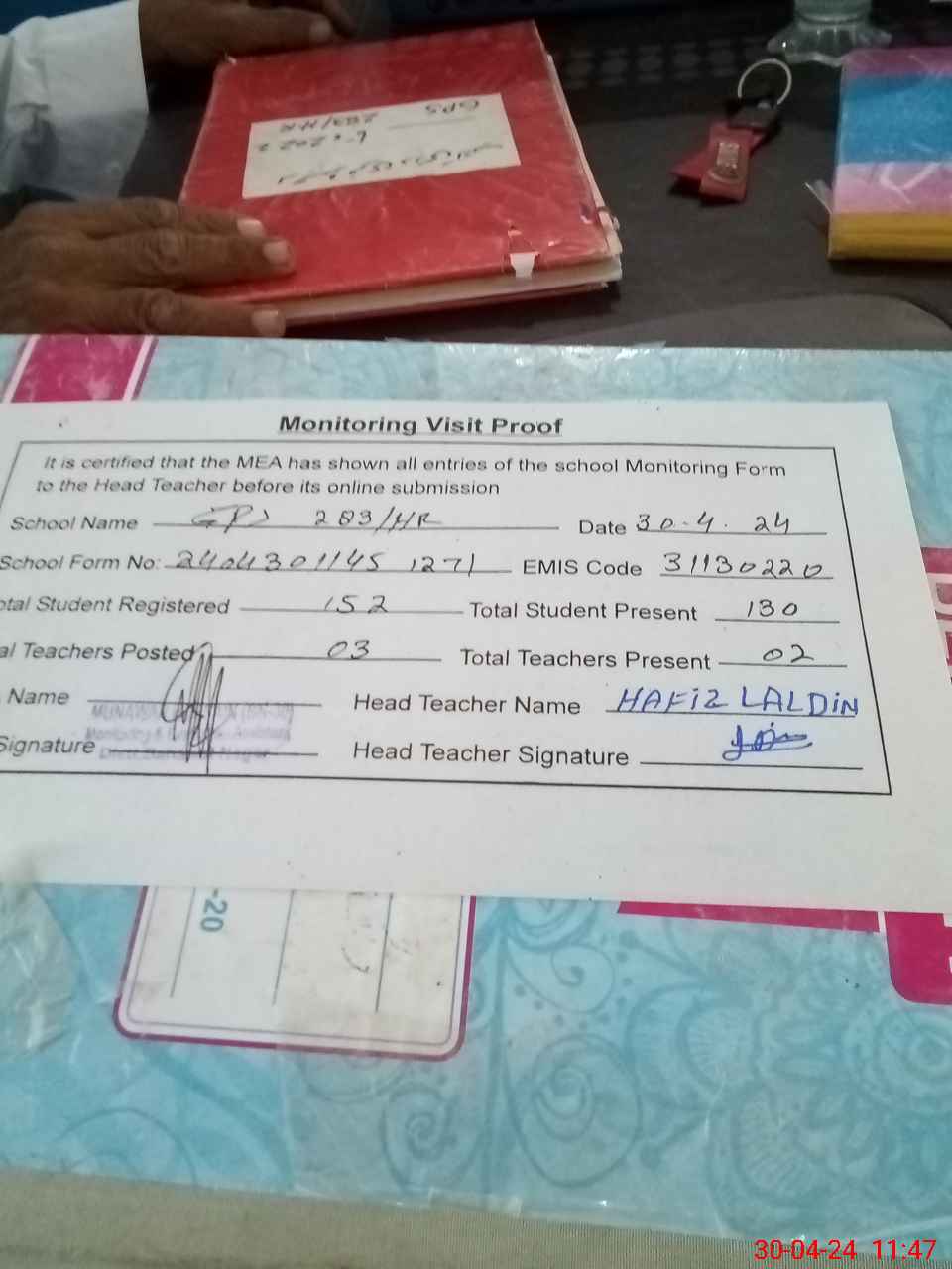 | EMIS Code: 31130220 | Name of School: GPS CHAK 283 HR | |||