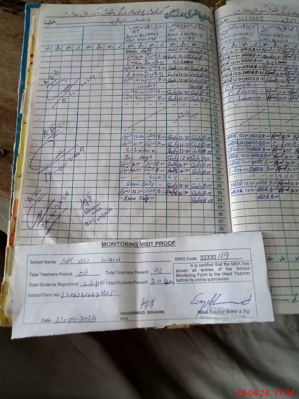 | EMIS Code: 32330119 | Name of School: GPS ALI WALA | |||