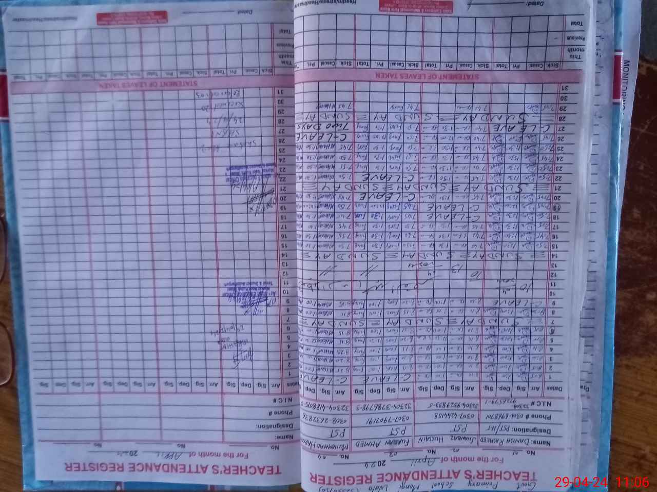 | Name: DA**** RA**** Designation: (School Headmaster's/Headmistress's) PST Phone/Cell Number: 03**** |