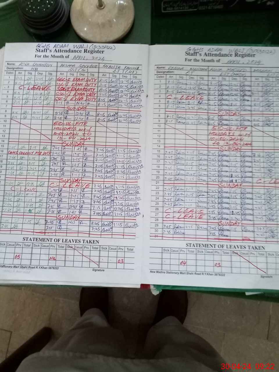 | Leave | Duty | Absent | Maternity | Medical | Ex- Pak |