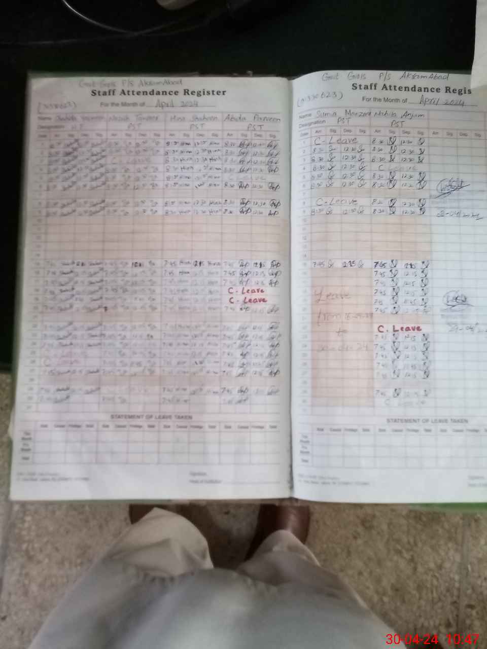| Leave | Duty | Absent | Maternity | Medical | Ex- Pak |