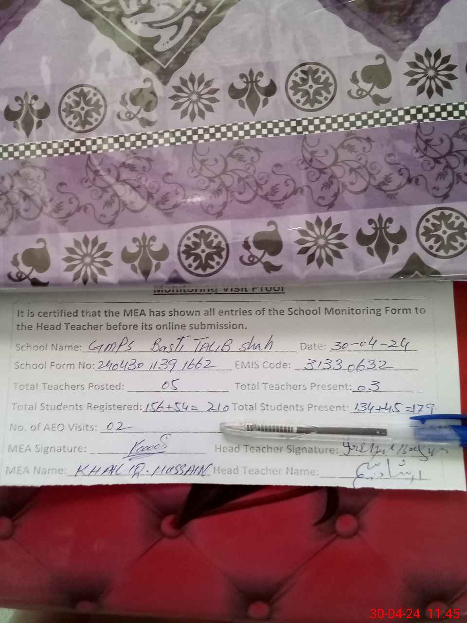 | EMIS Code: 31330632 | Name of School: GMPS BASTI TALIB SHAH | |||