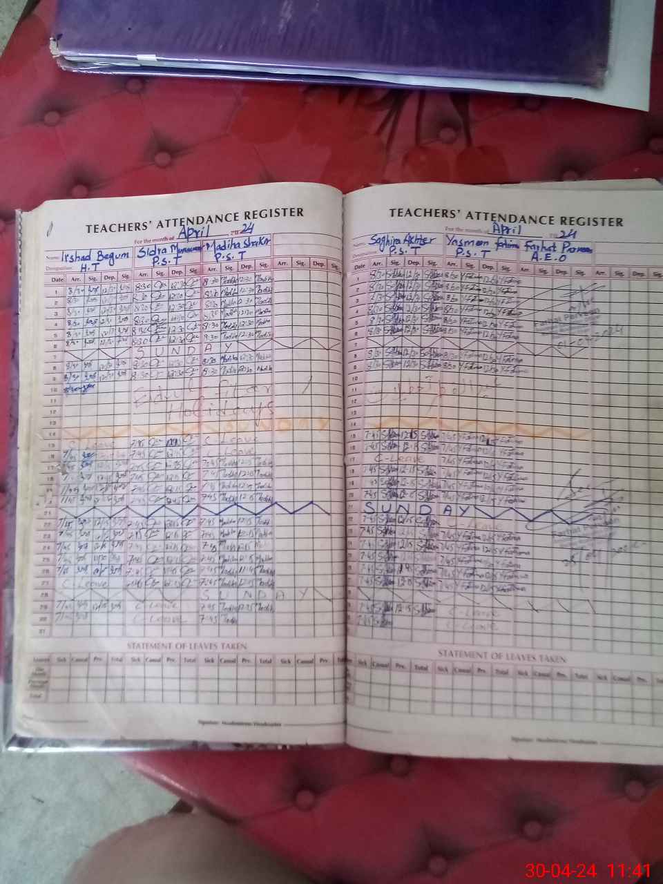 | Leave | Duty | Absent | Maternity | Medical | Ex- Pak |