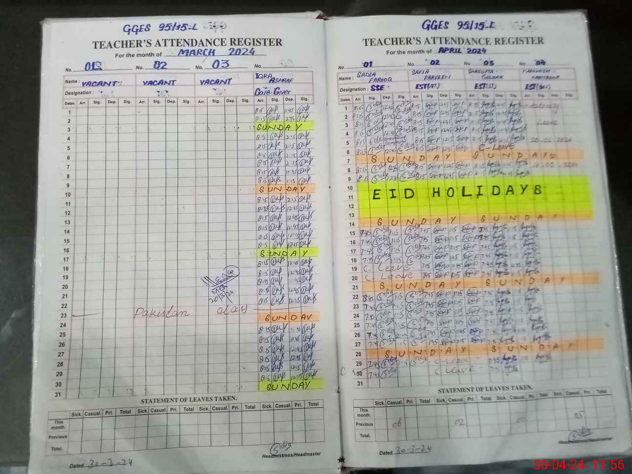 | Leave | Duty | Absent | Maternity | Medical | Ex- Pak |