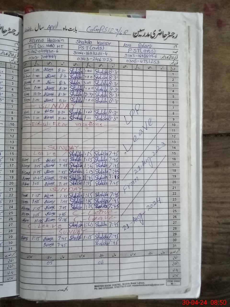 | CNIC | Full Name | Designation | R/C | Absence During Last Calender Month |