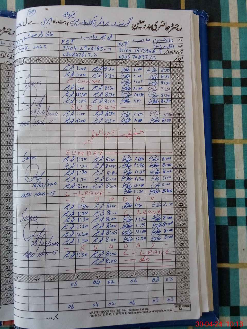 | Name: KH**** HU**** Designation: (School Headmaster's/Headmistress's) PTC Phone/Cell Number: 03**** |