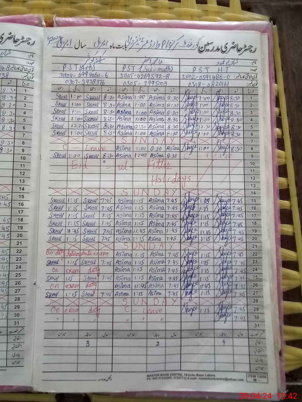 | 31**** | Sa**** Ko**** | 1 | 1 | 0 | 0 | 0 | 0 | 0 | 0 | 0 | 0 | 0 | Exam Duty |