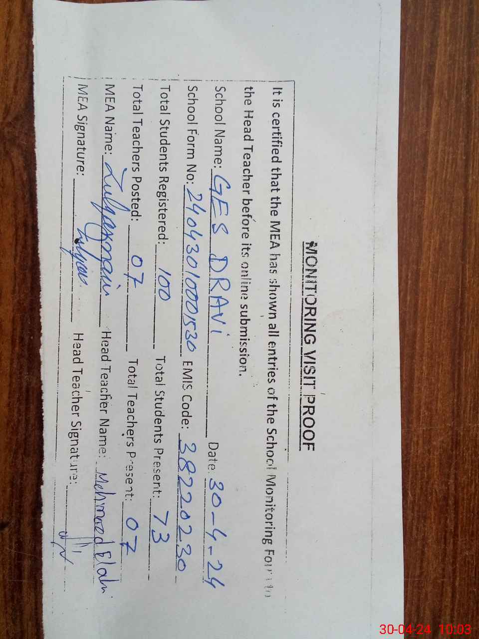 | EMIS Code: 38220230 | Name of School: GES DRAVI | |||