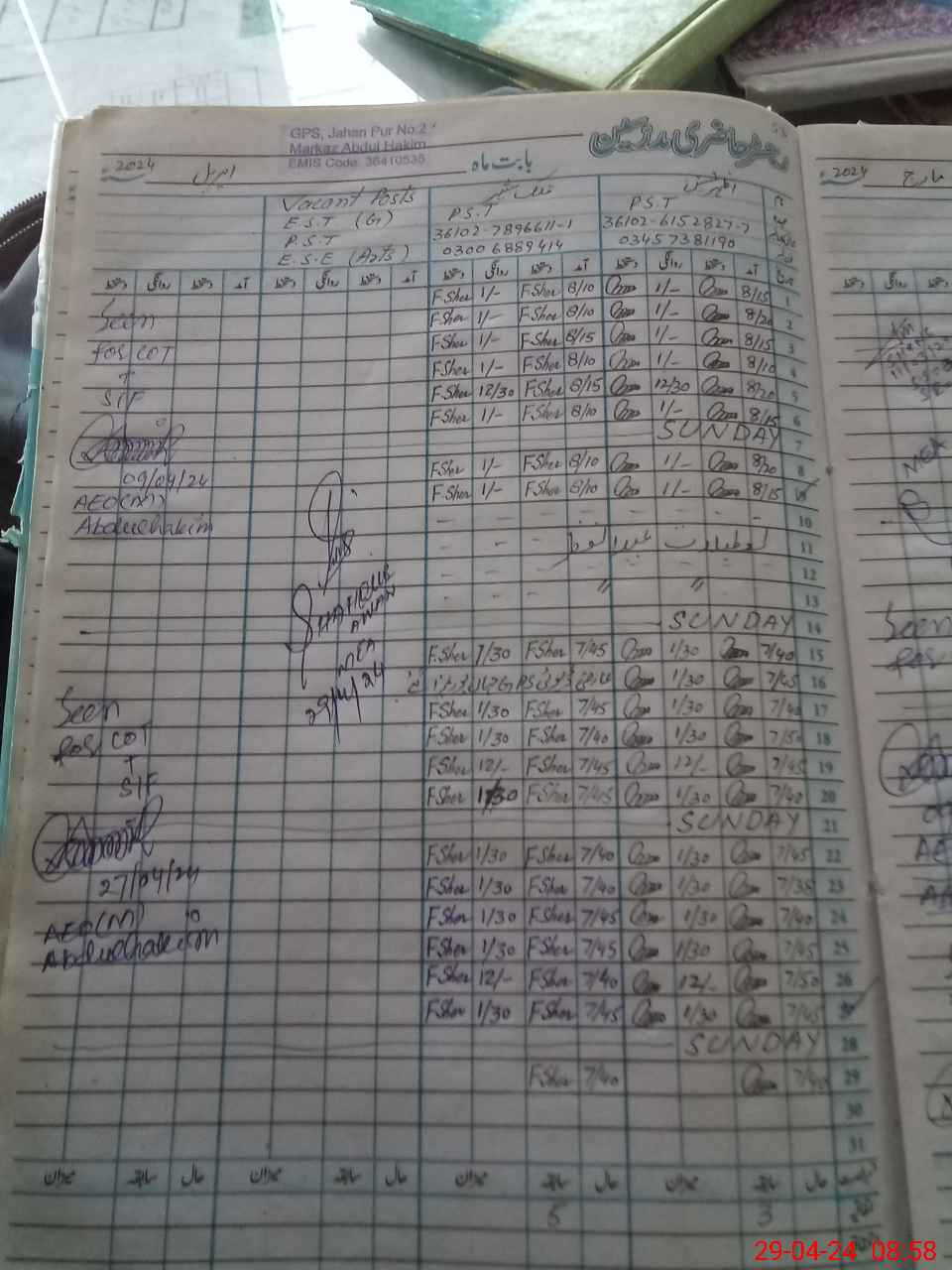 | Name: Az**** Hu**** Designation: (School Headmaster's/Headmistress's) PST Phone/Cell Number: 03**** |
