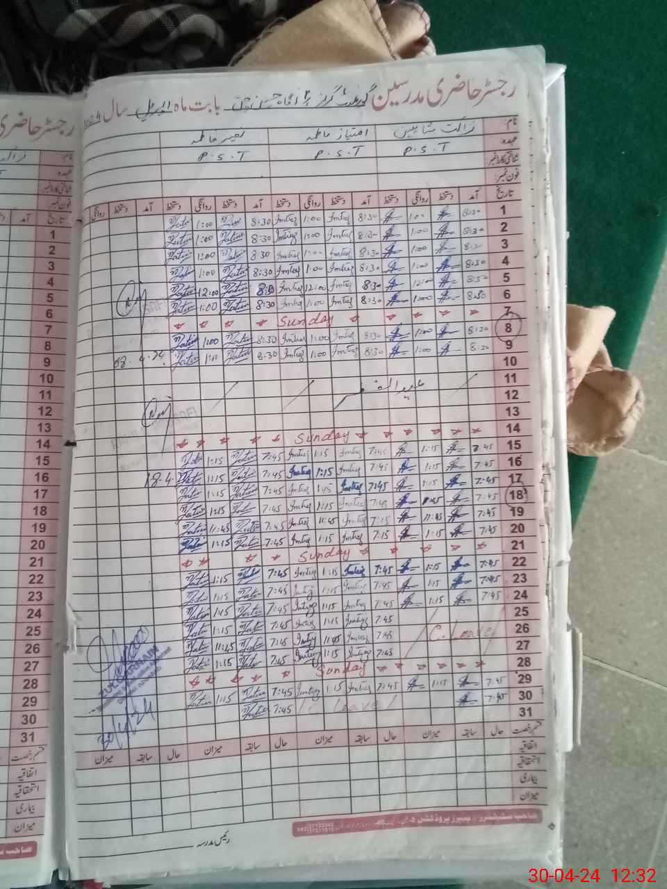 | Name: NA**** SH**** Designation: (School Headmaster's/Headmistress's) PST Phone/Cell Number: 03**** |