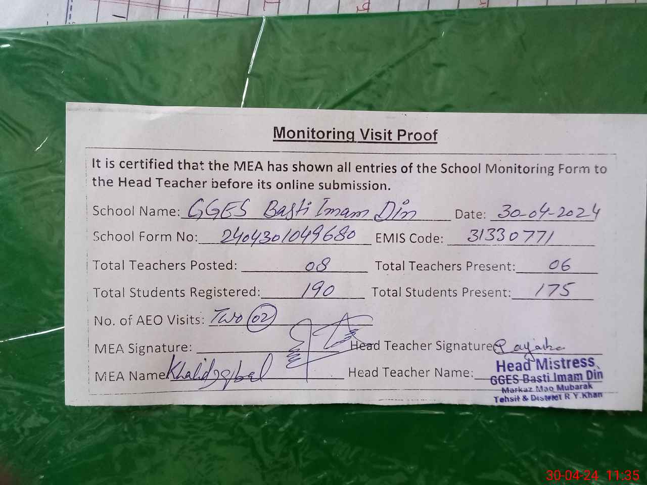 | EMIS Code: 31330771 | Name of School: GGES BASTI IMAM DIN | |||