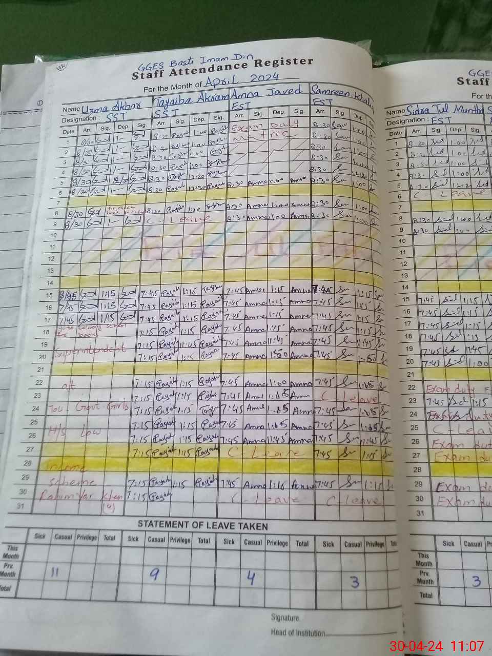 | 33**** | Uz**** Ak**** | Regular | 0 | 0 | 0 | 0 | 0 | 0 | 0 | 0 | 0 | Exam Duty | |