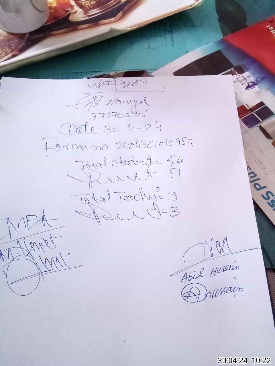 | Name: AB**** HU**** Designation: (School Headmaster's/Headmistress's) PST Phone/Cell Number: 03**** |