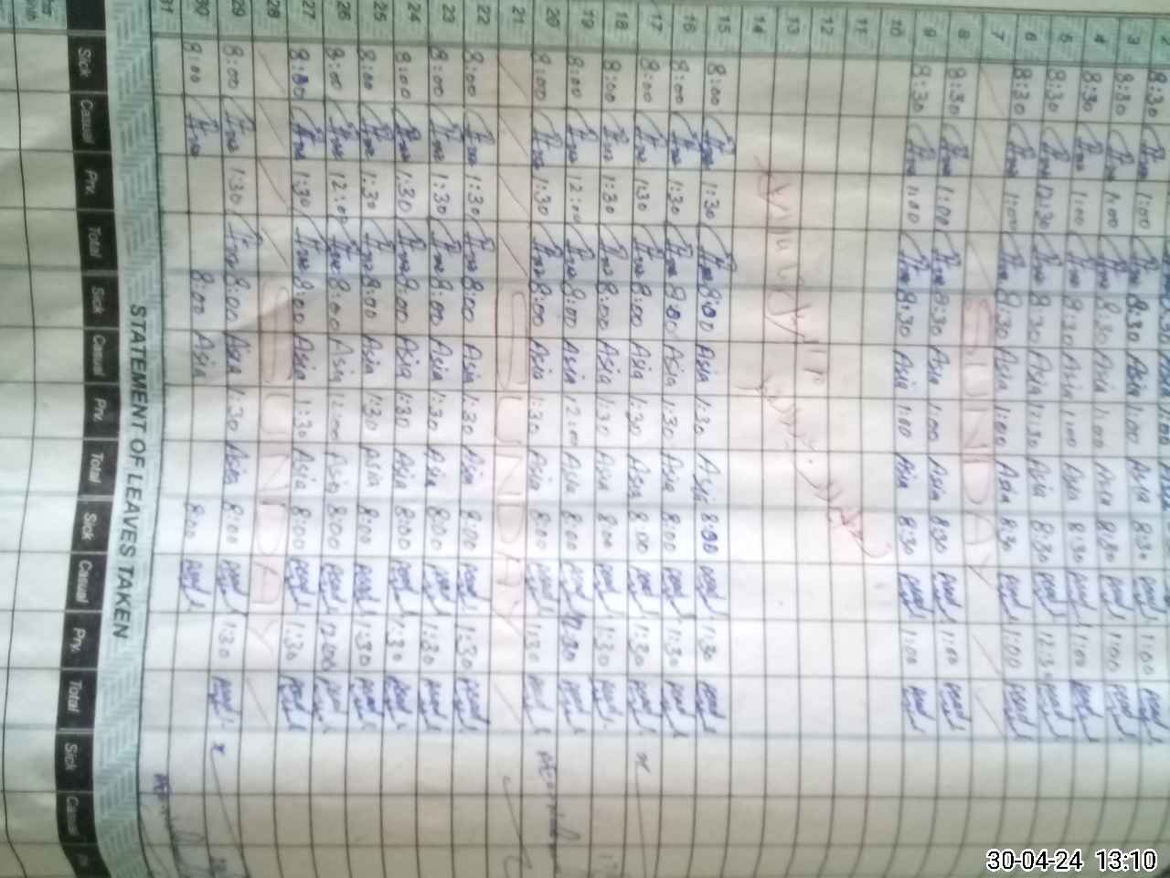 | CNIC | Full Name | Designation | R/C | Absence During Last Calender Month |
