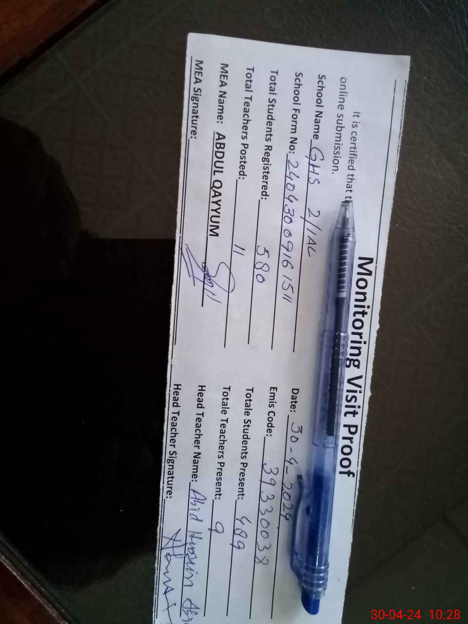 | EMIS Code: 39330038 | Name of School: GHS CHAK NO. 2/1-AL | |||