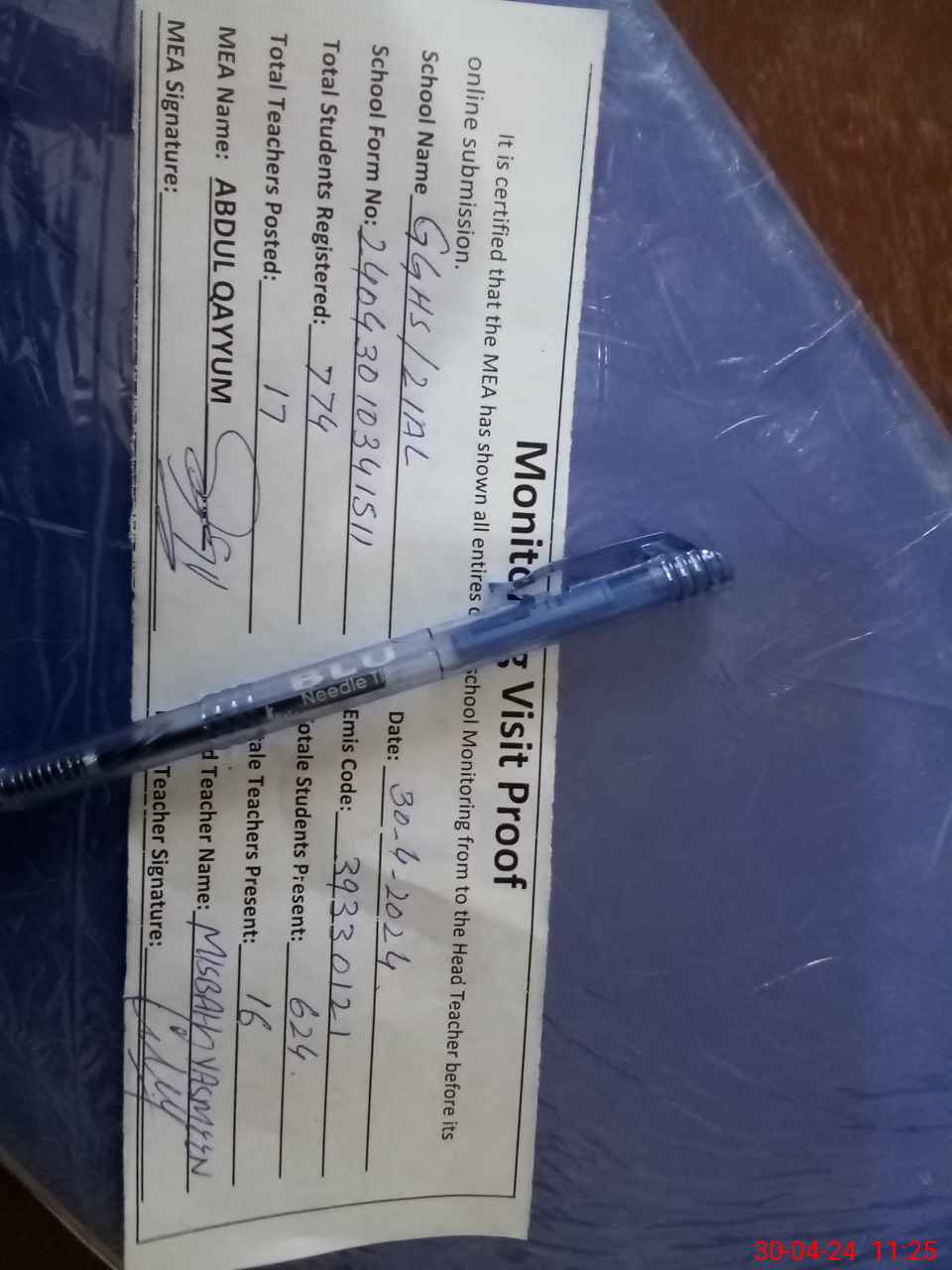 | Certified that this School was Inspected by the Undersigned MEA/DMO Today and the Information Stated Above is as Per Record. | |||||