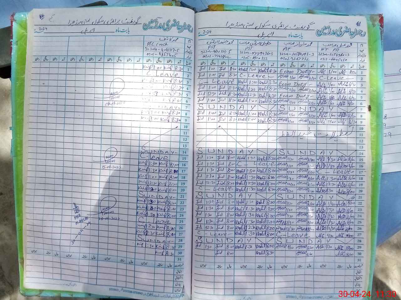 | CNIC | Full Name | Designation | R/C | Absence During Last Calender Month |