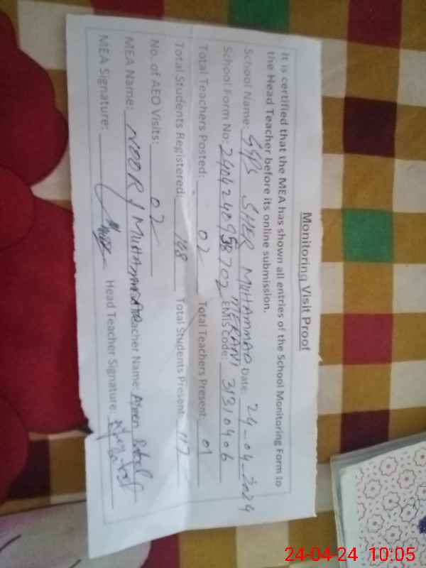 | Certified that this School was Inspected by the Undersigned MEA/DMO Today and the Information Stated Above is as Per Record. | |||||