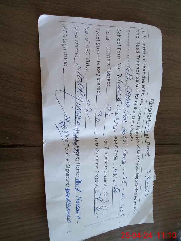 | EMIS Code: 31310154 | Name of School: GPS GHENA LAR MOUZA GHOTIA | |||