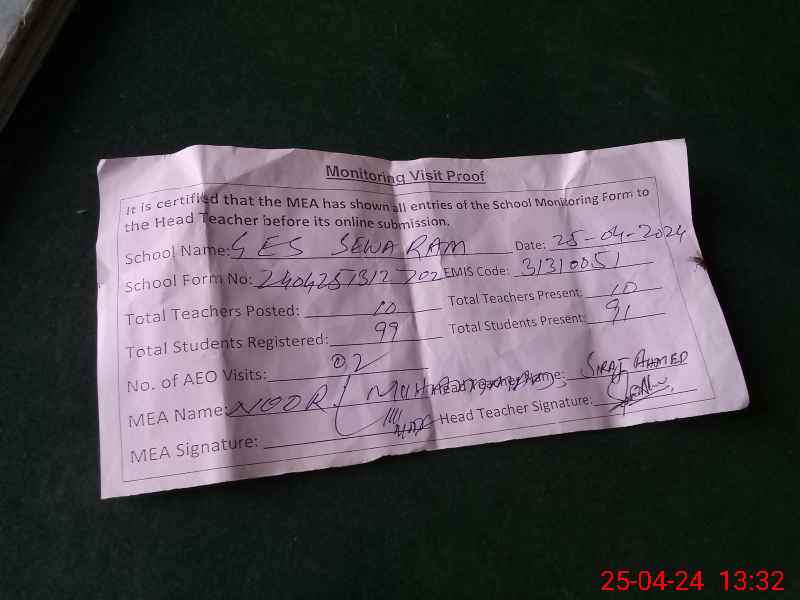 | EMIS Code: 31310051 | Name of School: GES SEWA RAM | |||