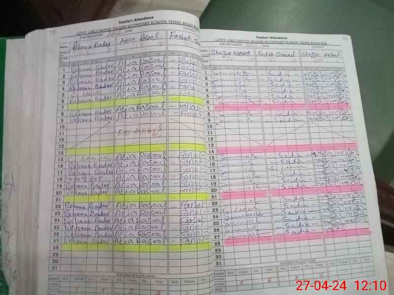 | 31**** | Mi**** Sa**** | 2 | 4 | 0 | 0 | 0 | 0 | 0 | 0 | 0 | 4 | Exam Duty | |