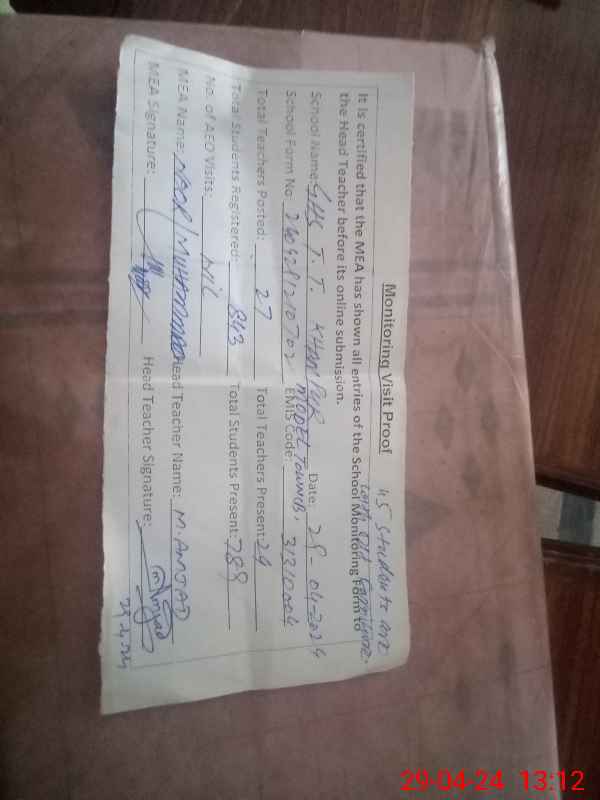 | EMIS Code: 31310004 | Name of School: GHS TT KHANPUR MODEL TOWN B KHANPUR | |||