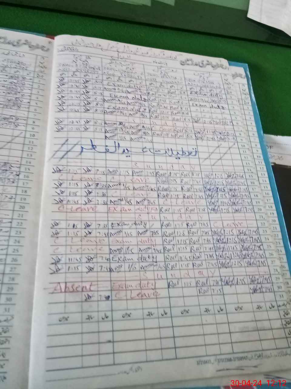 | Leave | Duty | Absent | Maternity | Medical | Ex- Pak |