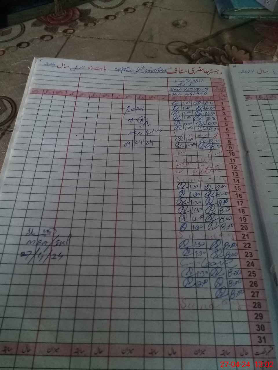 | CNIC | Full Name | Designation | R/C | Absence During Last Calender Month |