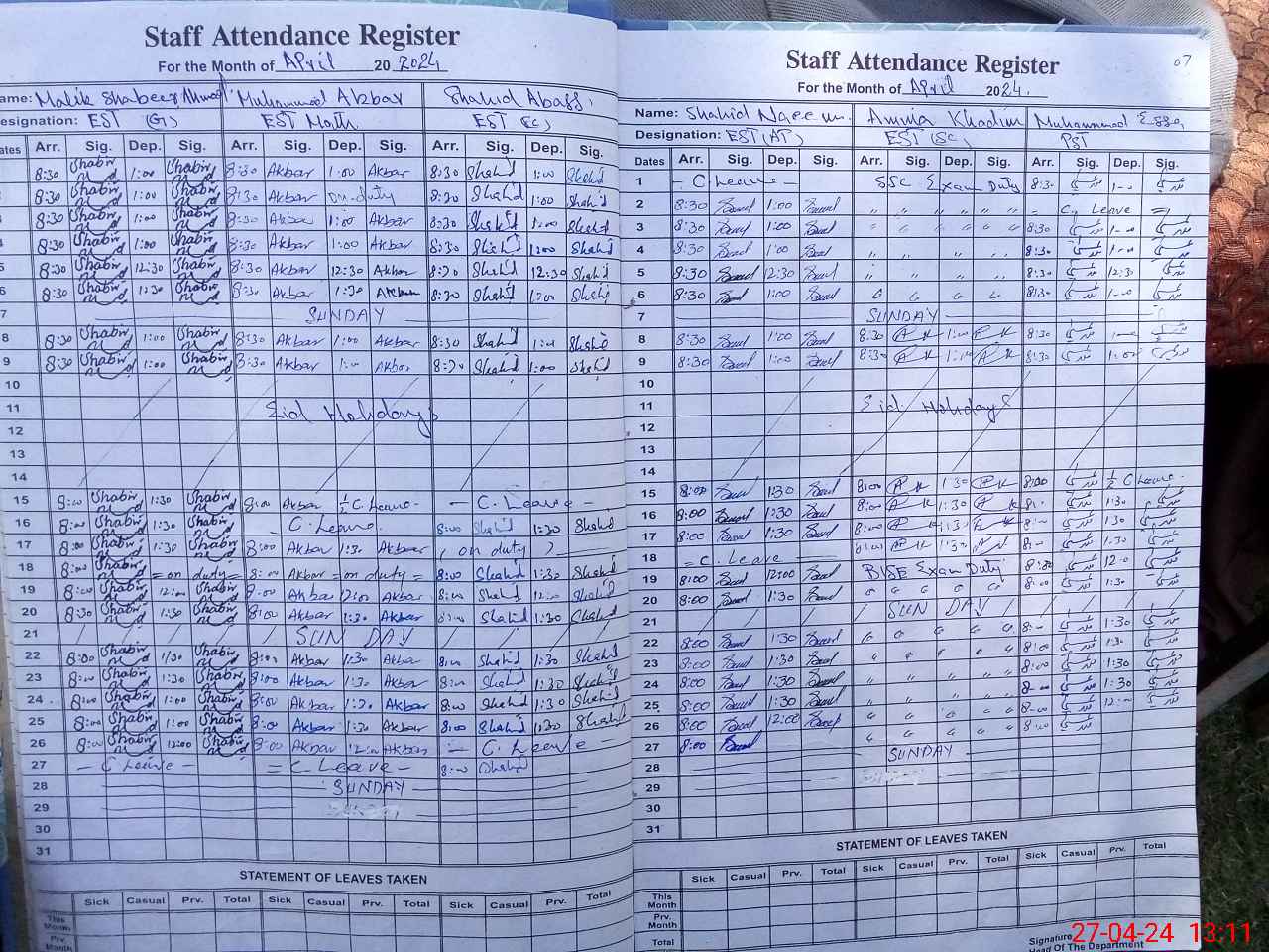 | 32**** | Am**** Kh**** | 1 | 1 | 30 | 0 | 0 | 0 | 0 | 0 | 0 | 1 | Exam Duty | |