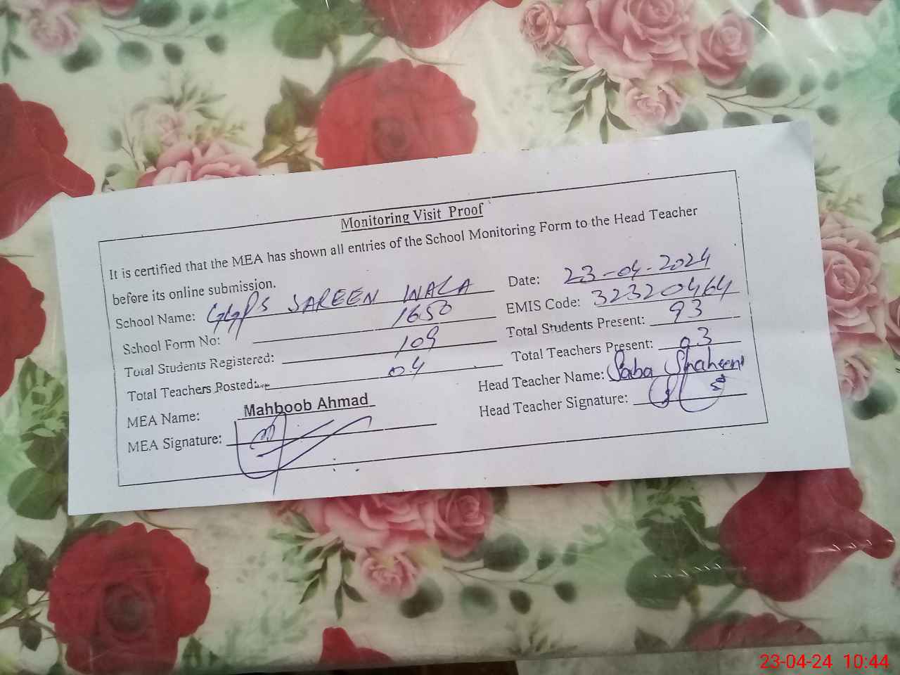 | EMIS Code: 32320464 | Name of School: GGPS SAREEN WALA | |||
