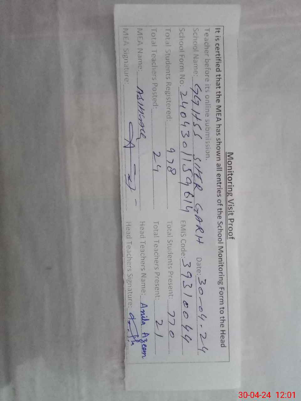 | EMIS Code: 39310044 | Name of School: GGHSS SHER GARRH | |||