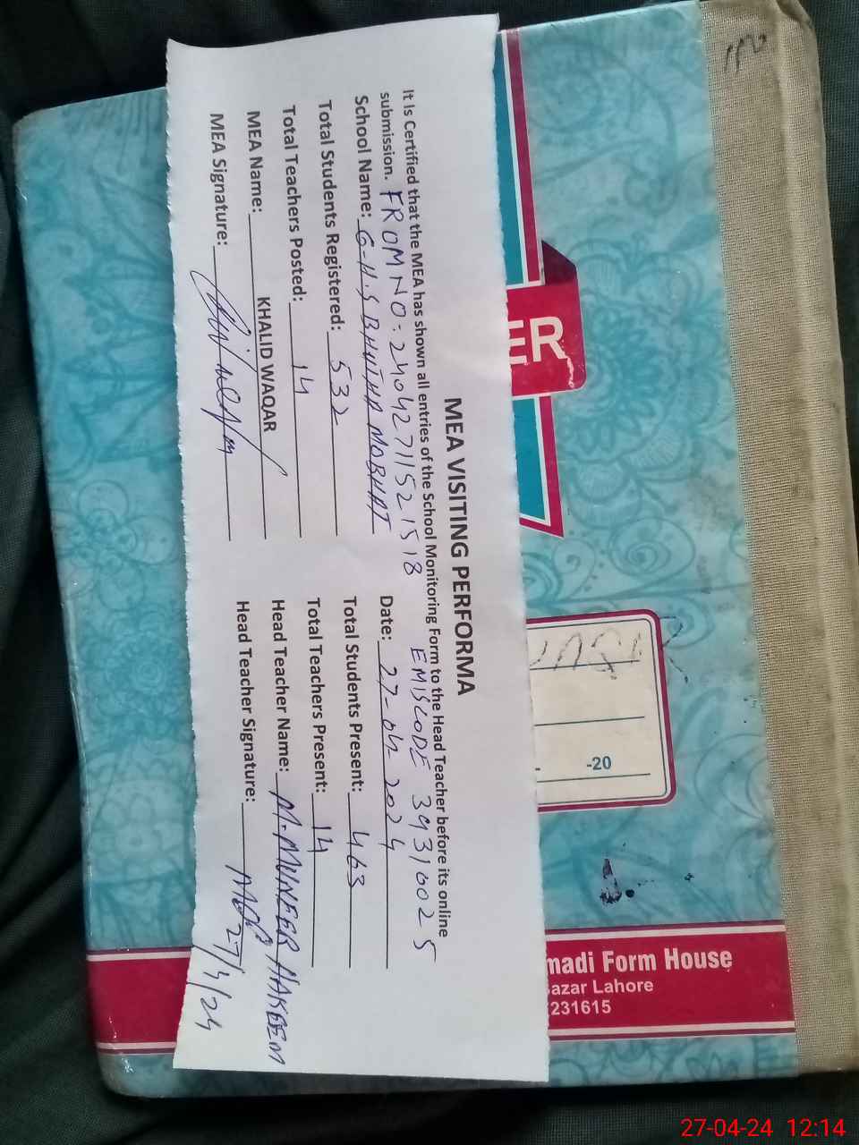 | EMIS Code: 39310025 | Name of School: GHS BHUTTA MOHABAT | |||