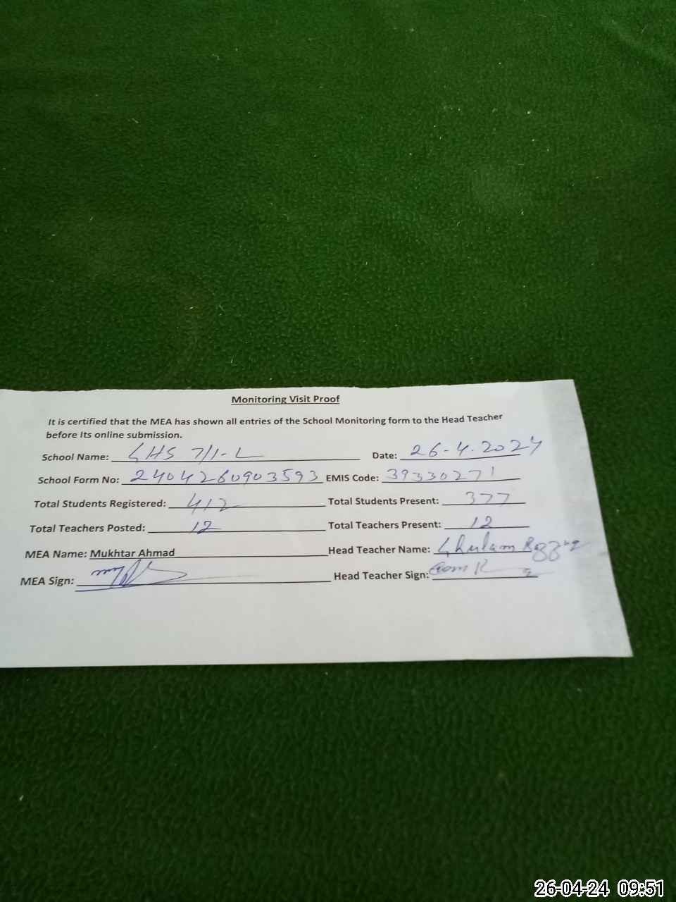 | EMIS Code: 39330271 | Name of School: GHS CHAK NO 7/1.L | |||