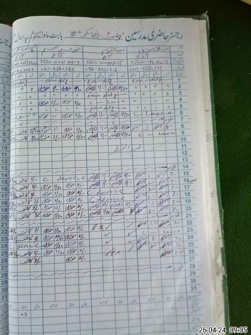 | 35**** | Ab**** Qa**** | Regular | 0 | 8 | 0 | 0 | 0 | 0 | 0 | 0 | 0 | Exam Duty | |