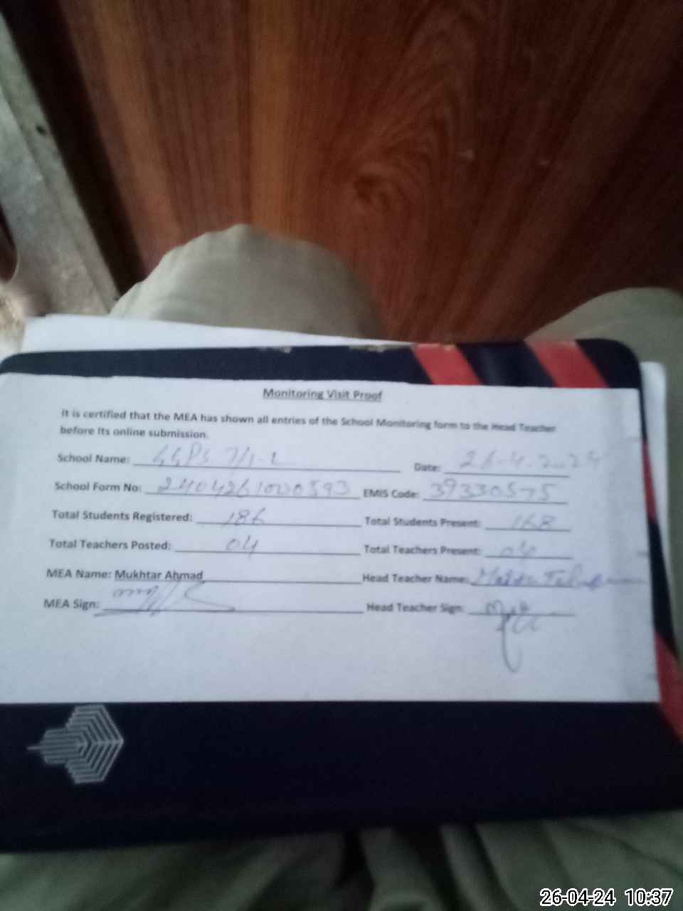 | Certified that this School was Inspected by the Undersigned MEA/DMO Today and the Information Stated Above is as Per Record. | |||||