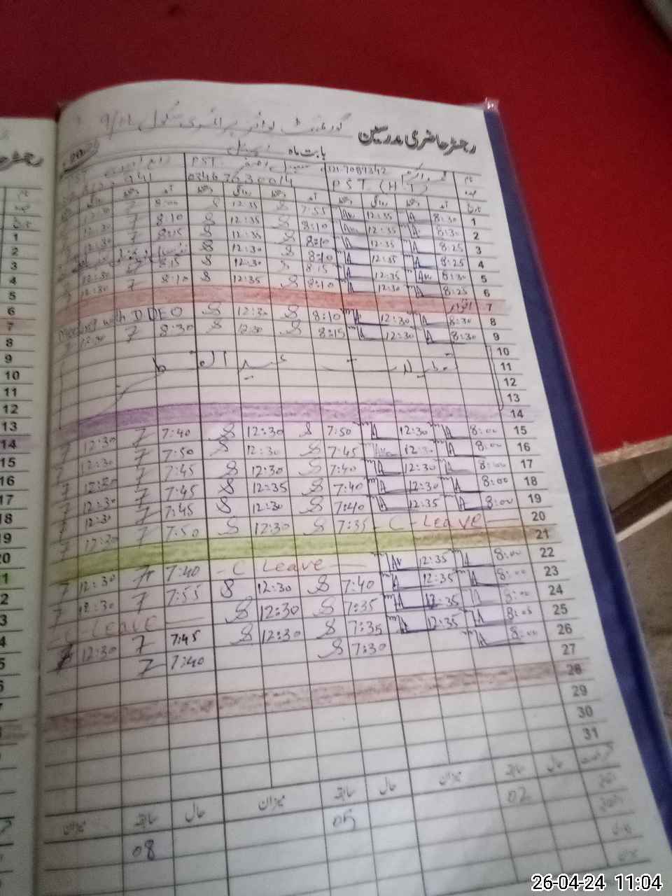 | Leave | Duty | Absent | Maternity | Medical | Ex- Pak |