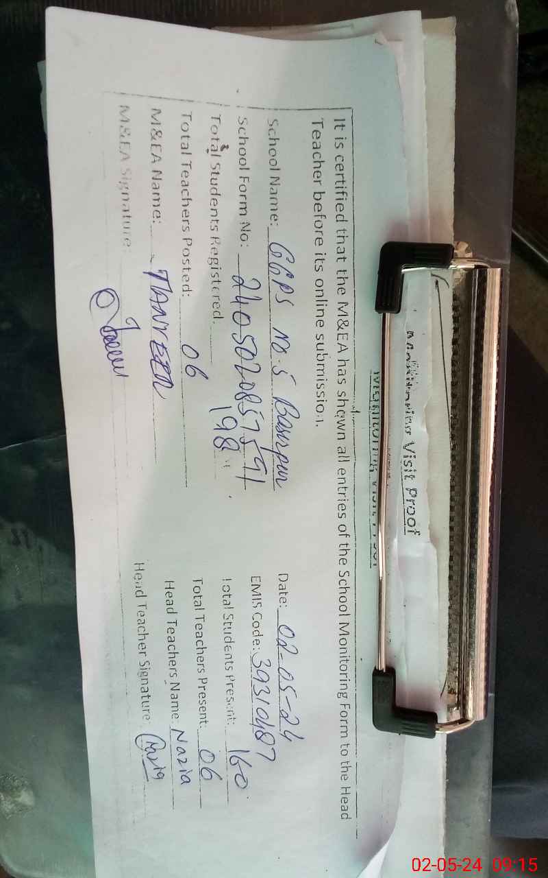 | EMIS Code: 39310487 | Name of School: GGPS NO. 5 BASIR PUR | |||
