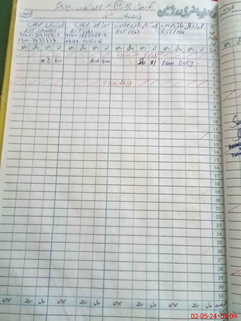 | 31**** | Mu**** Iq**** | SST | Regular | 0 | 0 | 0 | 0 | 0 | 0 | 0 | 0 | 0 | Exam Duty |
