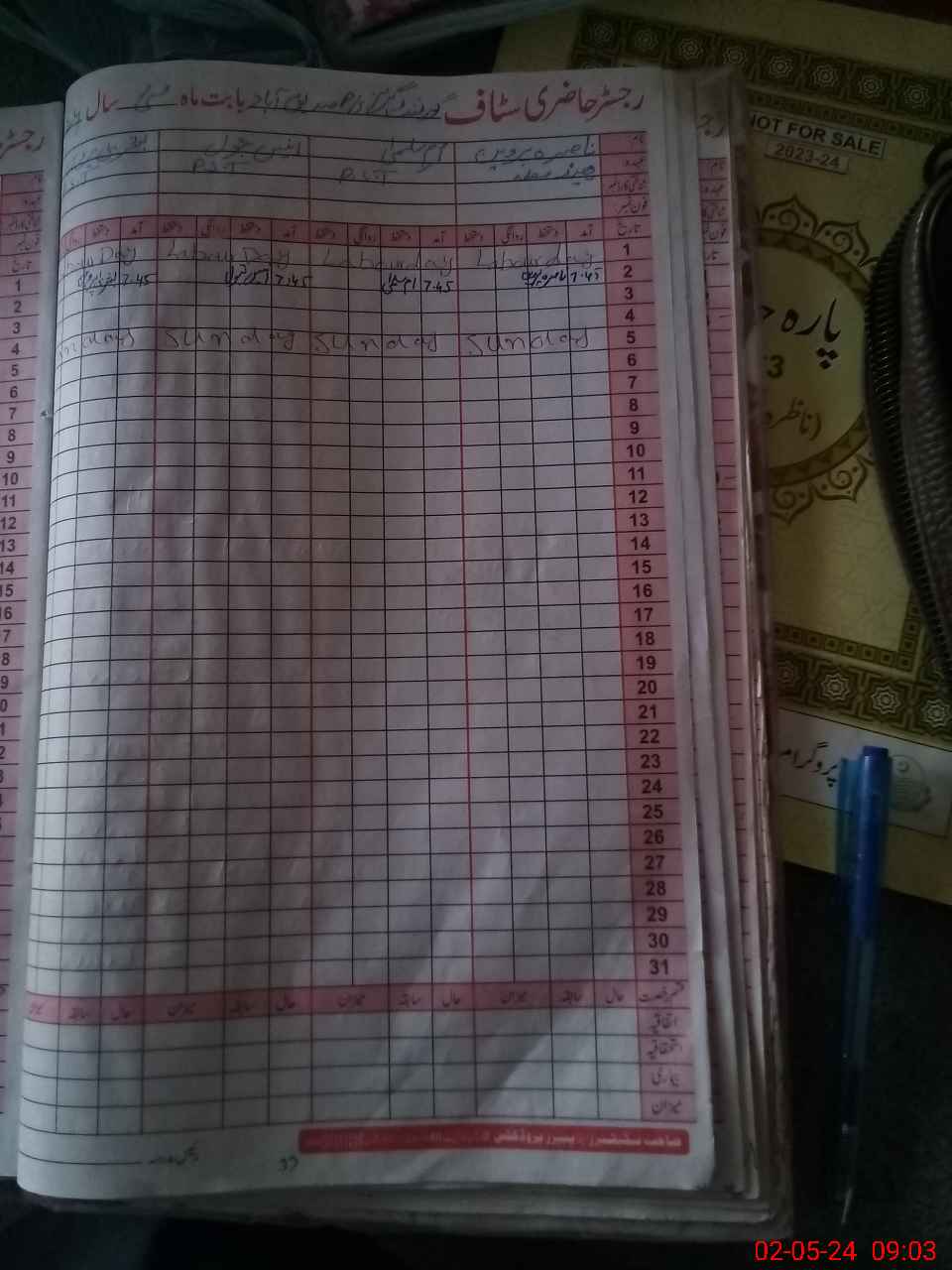 | CNIC | Full Name | Designation | R/C | Absence During Last Calender Month |
