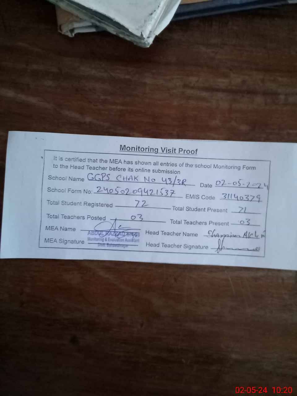 | EMIS Code: 31140379 | Name of School: GGPS CHAK NO 43/3-R | |||
