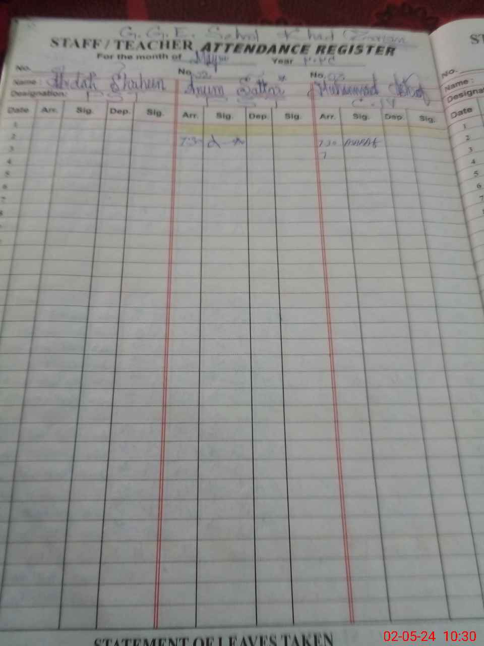 | 37**** | Ab**** Sh**** | PST | Regular | 0 | 0 | 0 | 0 | 0 | 0 | 0 | 0 | 0 | Exam Duty |