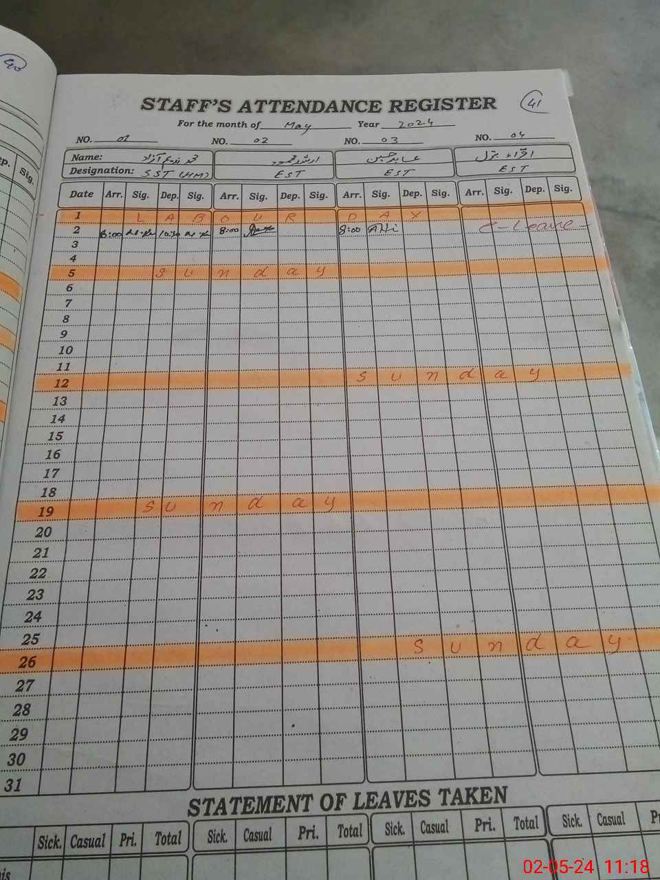 | 37**** | Aa**** Me**** | CHOWKIDAR | Regular | 0 | 0 | 0 | 0 | 0 | 0 | 0 | 0 | 0 | Casual |