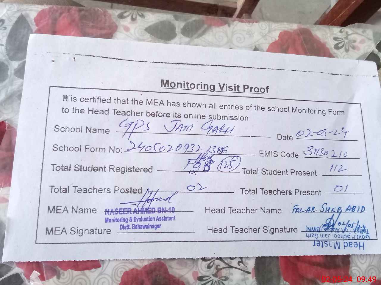 | EMIS Code: 31130210 | Name of School: GPS JAM GARH | |||