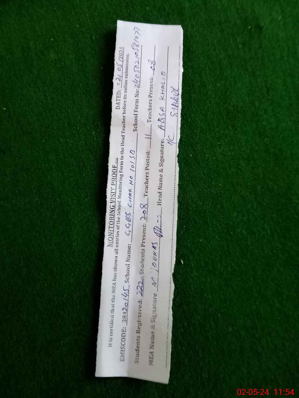 | Certified that this School was Inspected by the Undersigned MEA/DMO Today and the Information Stated Above is as Per Record. | |||||