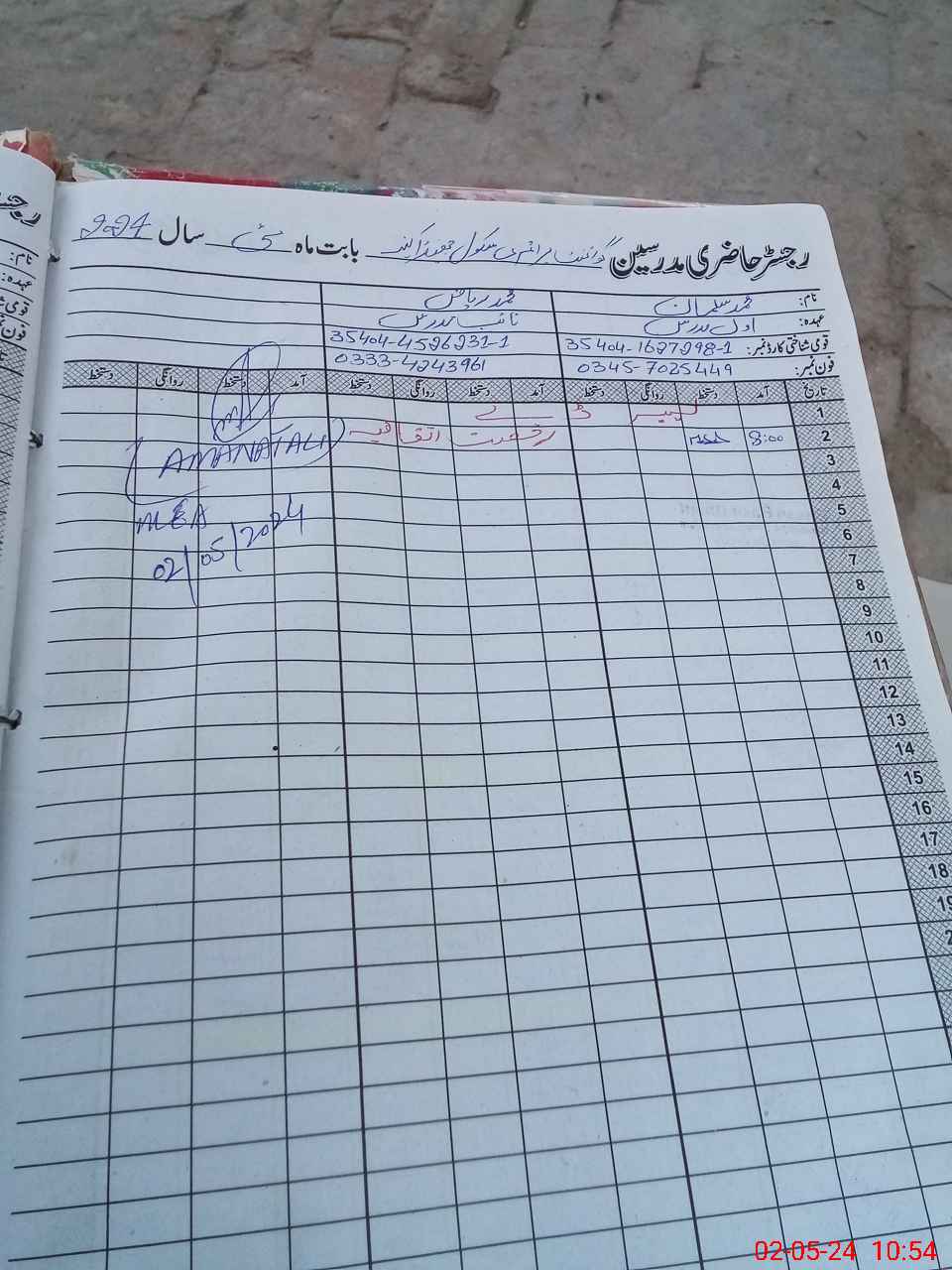 | Name: Aq**** Bi**** Designation: (School Headmaster's/Headmistress's) PSSP Phone/Cell Number: 03**** |