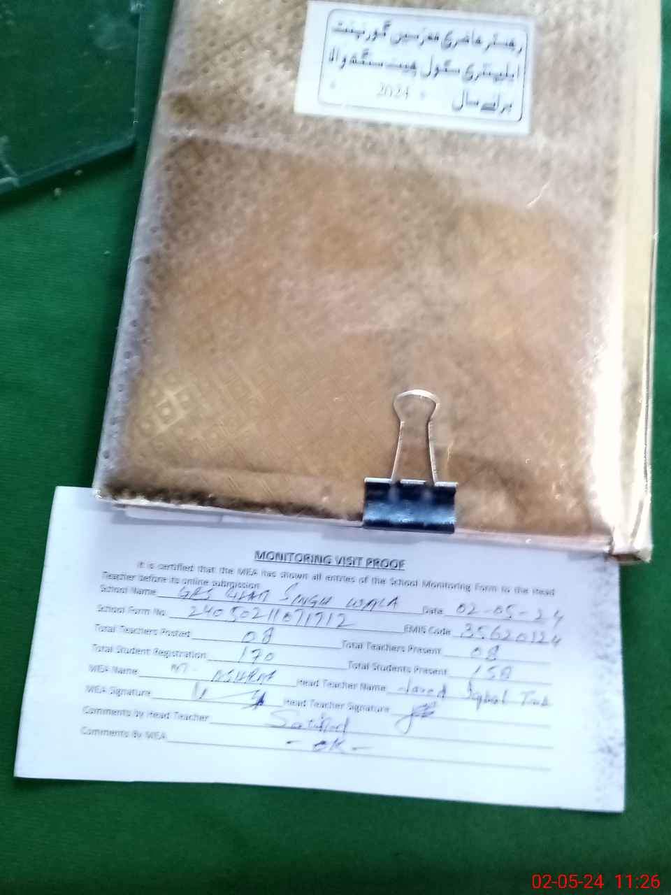 | Attendance Register | Head Teacher | MEA with School | Visit Proof |