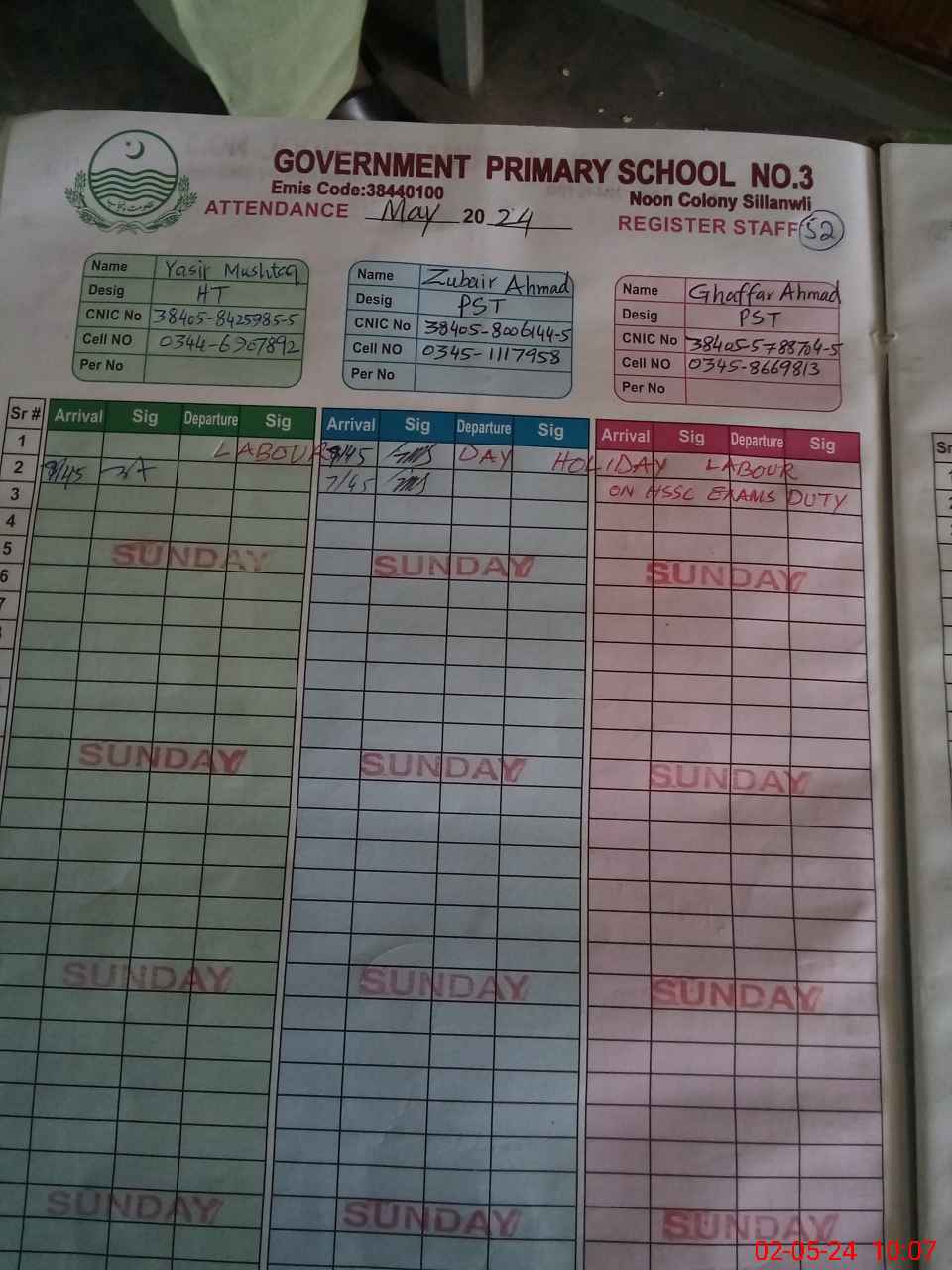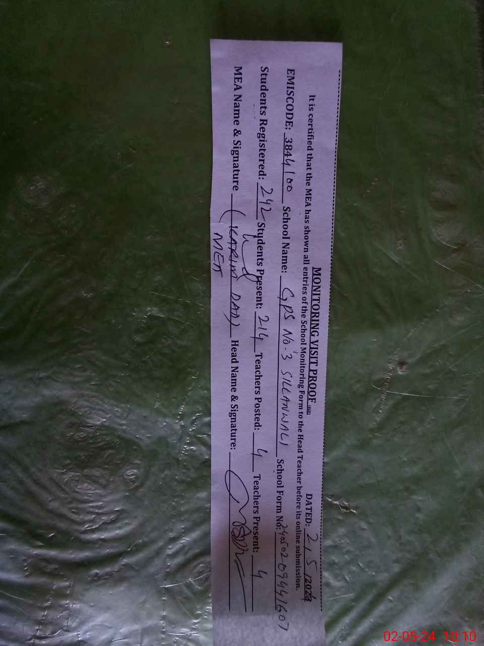 | EMIS Code: 38440100 | Name of School: GPS NO. 3 NOON COLONY SILLANWALI | |||